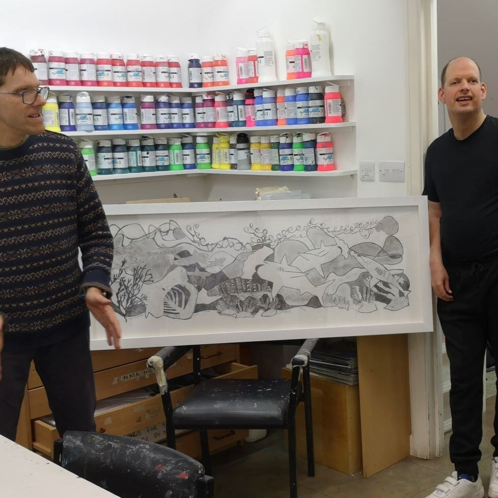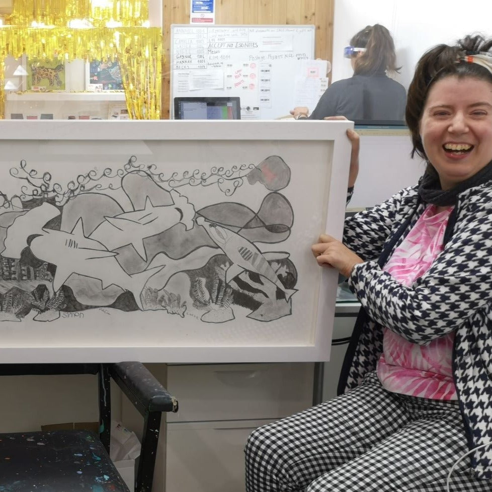 A stunning pencil on paper collaborative masterpiece depicting the predators of the deep. Full of movement and drama this artwork include the creative talents of several artists over many weeks.