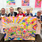 The painting is a tapestry of individual sketches; each artist’s work woven together to form a harmonious composition and includes detailed paintings within paintings.