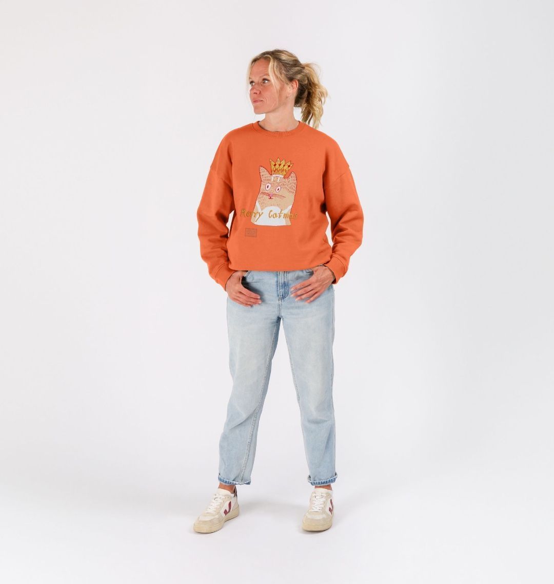 Certified Organic Cotton Relaxed Fit Sweatshirt, 300g/m2. Wash cool, hang dry. GM free. Not tested on animals. Does not contain animal-derived products. Printed in the UK with low waste printing tech. Made in a renewable energy powered factory audited for a wide range of social and sustainability criteria.