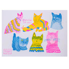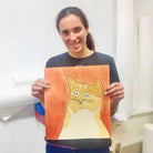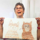 The Miaow for Now artwork was created in the studio over a number of weeks as part of a group work project on cats. A group of artists worked on individual drawings each displaying their own characters, names and personalities. These drawings were then put together to create the wonderful Miaow for Now design, featured across a range of products.