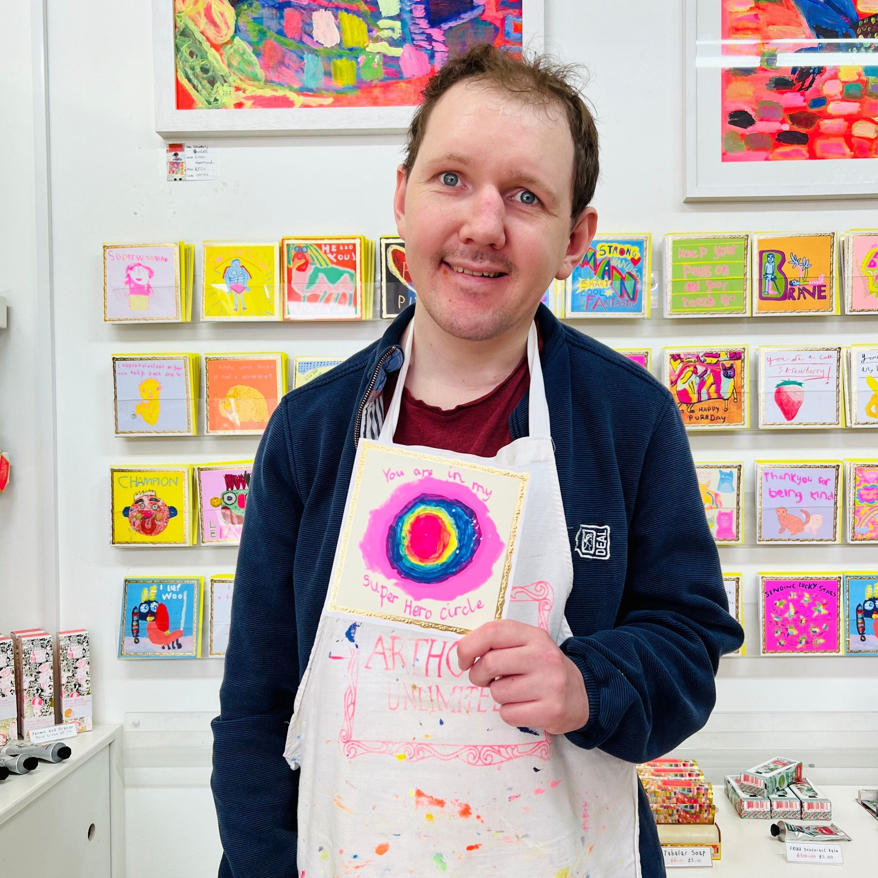 When I come to ARTHOUSE what I like best is working in the shop. I enjoy helping to pack products such as lip balms and cards and welcoming customers who visit us. As well as painting, I love sports. My favourite is snooker and I also like skiing.