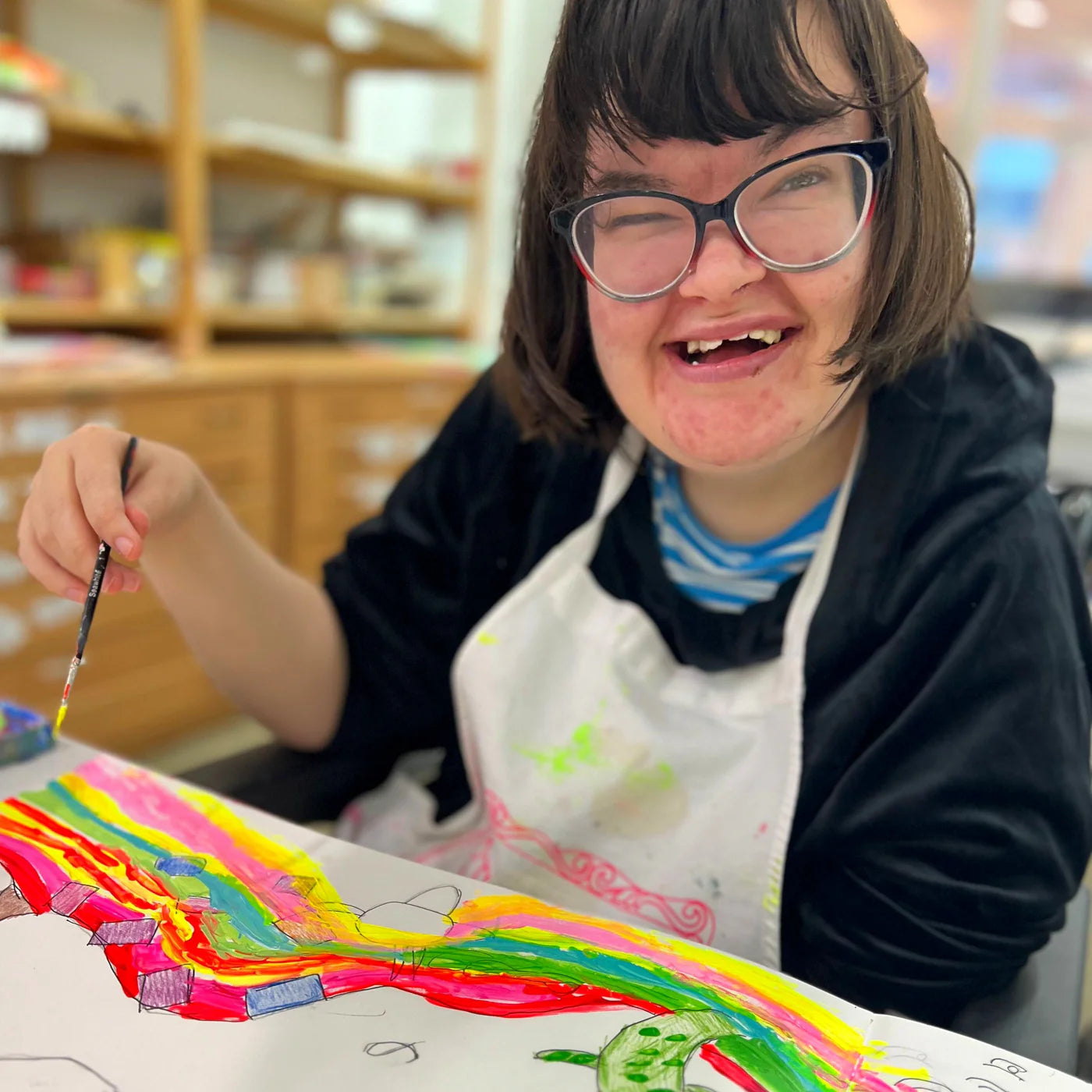 I like to come to Arthouse to create artwork with my friends, it is relaxing and calming. Painting makes me happy, I like abstract landscapes and I’m most proud of my painting ‘Colourful Spring’ I’m excited because it’s going to be made into a chocolate and mug design. It makes me proud to think that people will have gifts with my design on it.