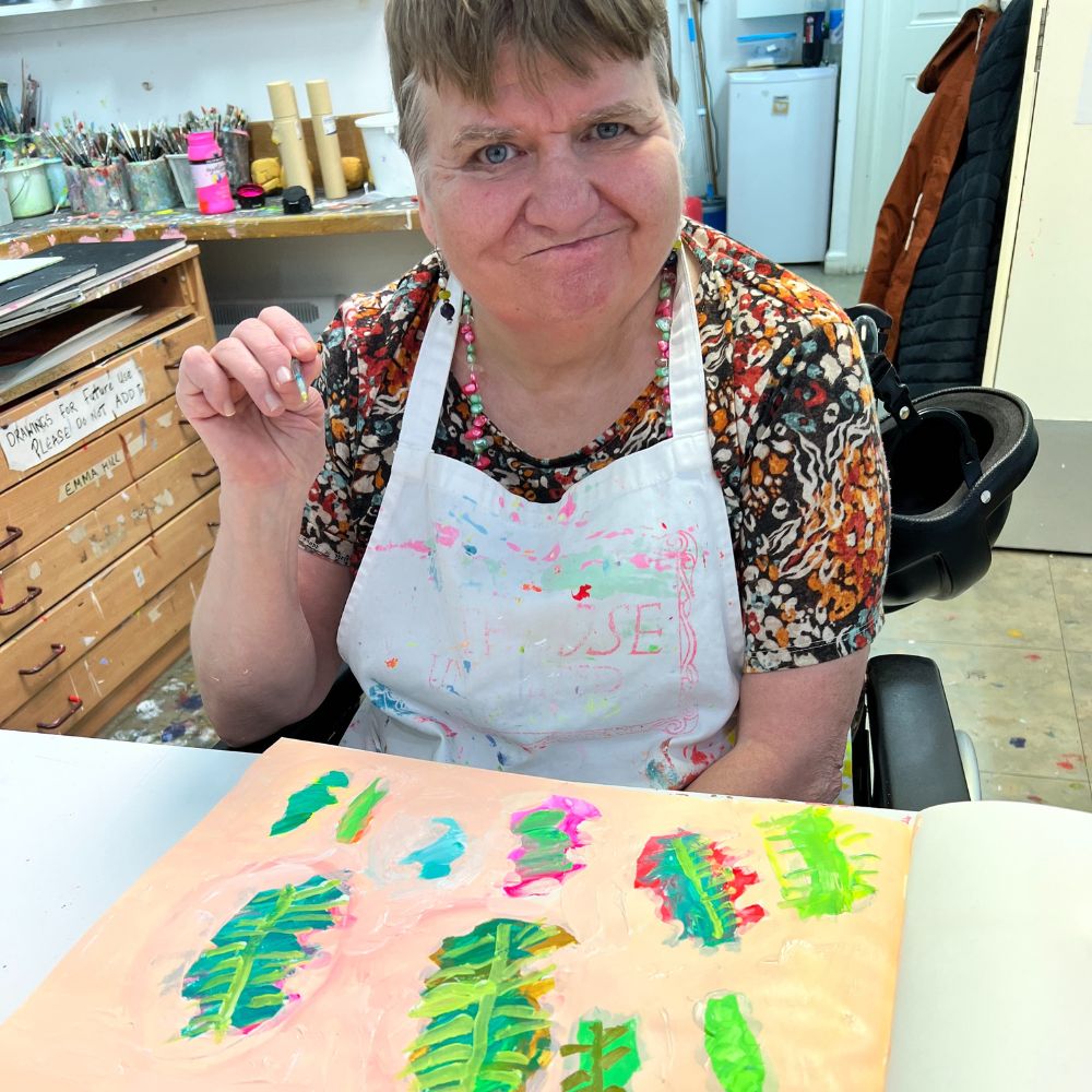 The colourful artwork for the Seeds packets arose from a project in the studio focusing on growing vegetables. The artists chose to paint or draw vegetables and fruit that they enjoyed to eat and came up with quotes about planting which are shown on the back of the packets.