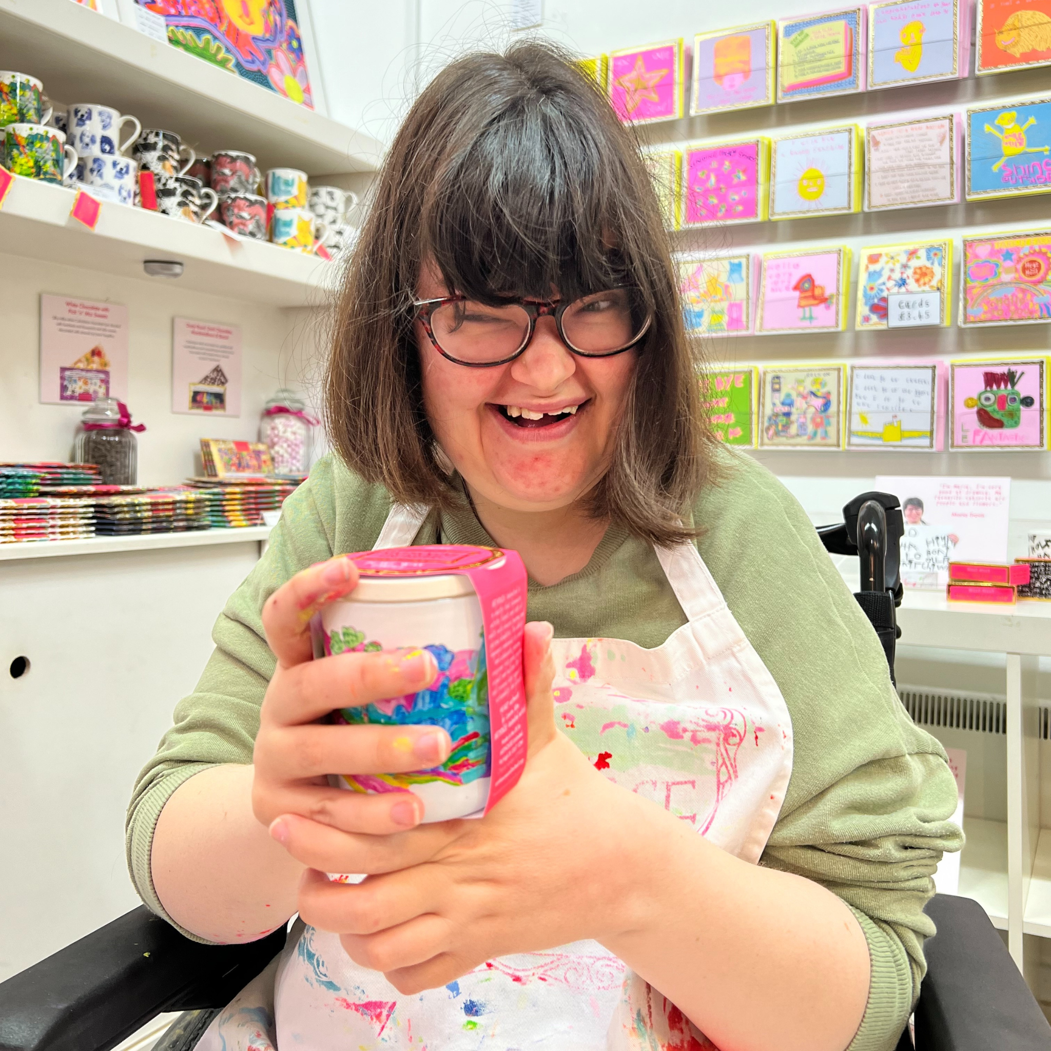 I like to come to Arthouse to create artwork with my friends, it is relaxing and calming. Painting makes me happy, I like abstract landscapes and I’m most proud of my painting ‘Colourful Spring’ I’m excited because it’s going to be made into a chocolate and mug design. It makes me proud to think that people will have gifts with my design on it.