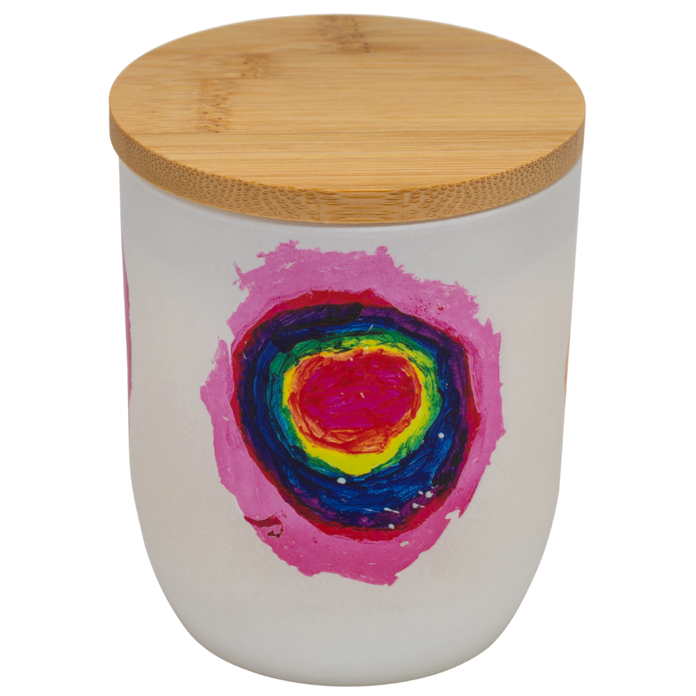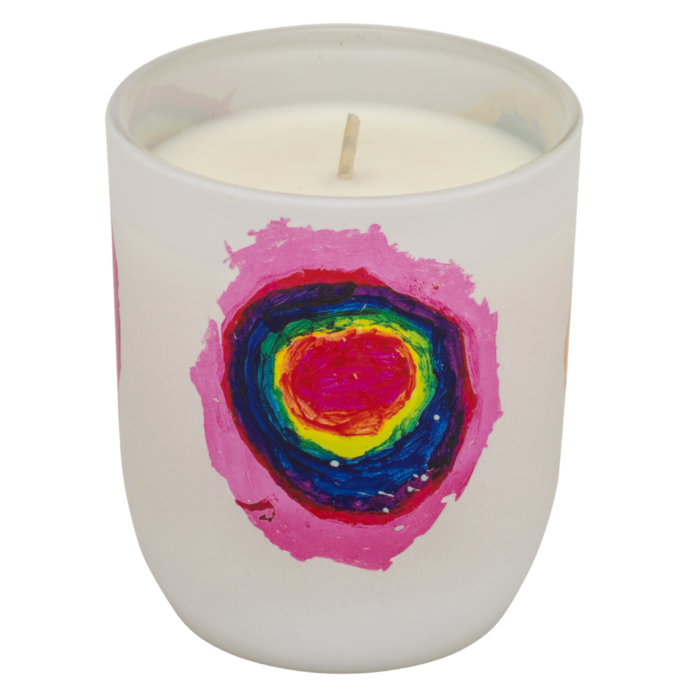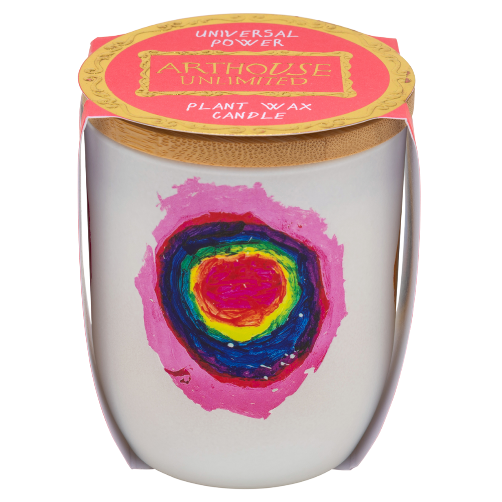 A uniquely fragranced vegan-friendly candle featuring the beautiful ‘Universal’ artwork created by talented ARTHOUSE Unlimited artist Arthur Lyle on white glass.