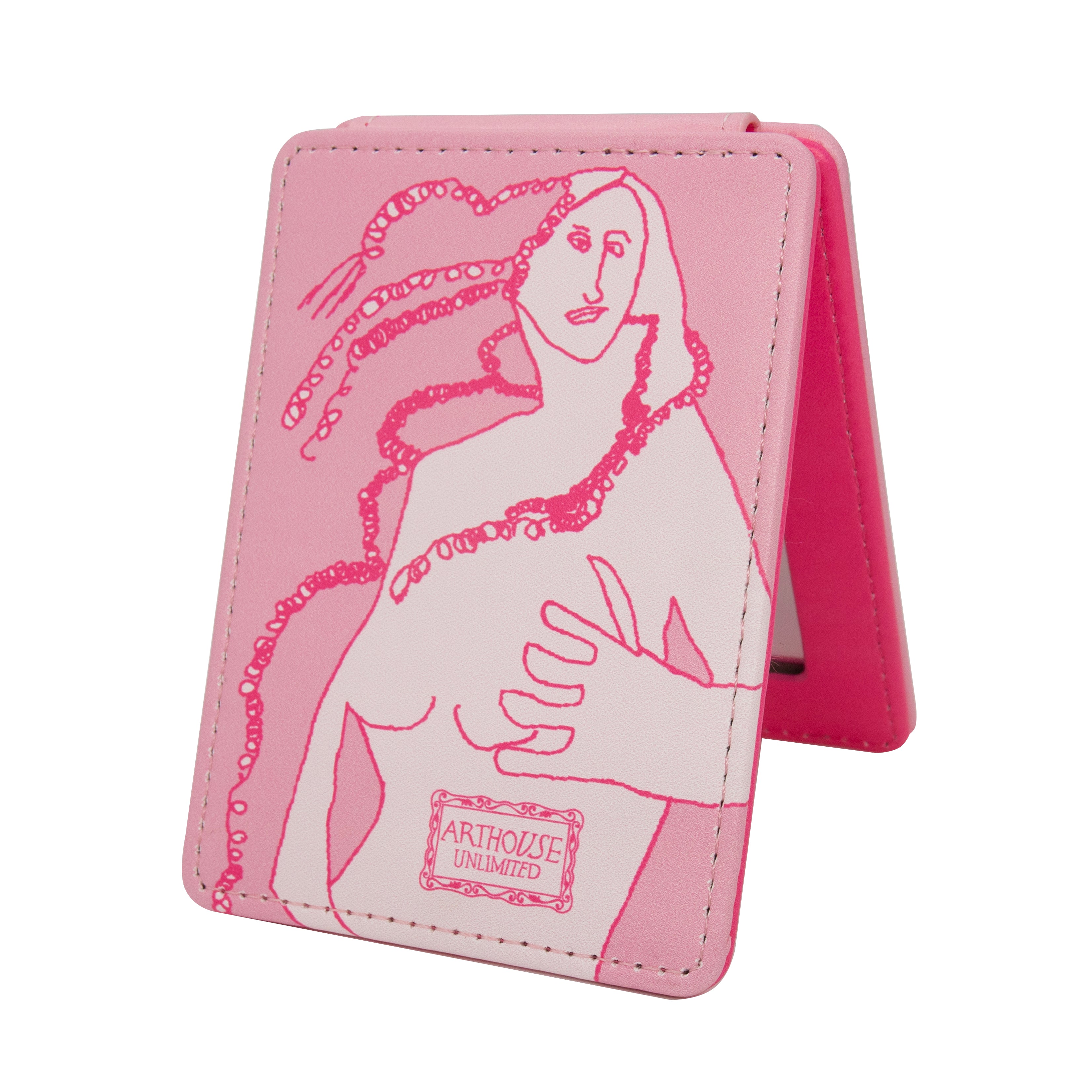 Pretty in pink, this compact mirror feature the much-loved 'Lady Muck' design from ARTHOUSE Unlimited artist, Peter Andrews. Pop into a pocket or handbag for touch ups on the go.