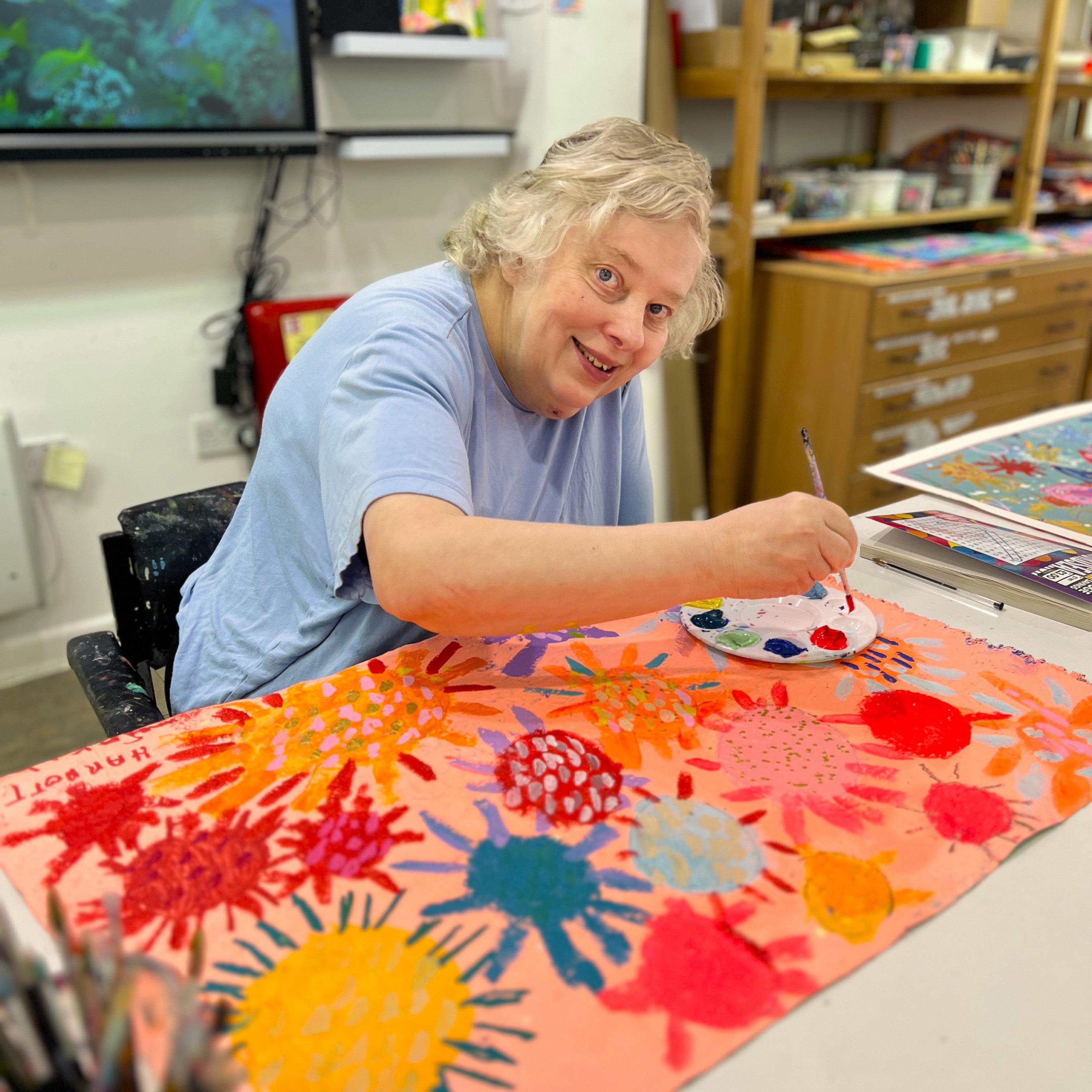 I like coming to ARTHOUSE Unlimited to do painting and I enjoy painting flowers because they make me happy. I’ve been coming here for a long time - it’s great as it gets me out and I get to work with great people.