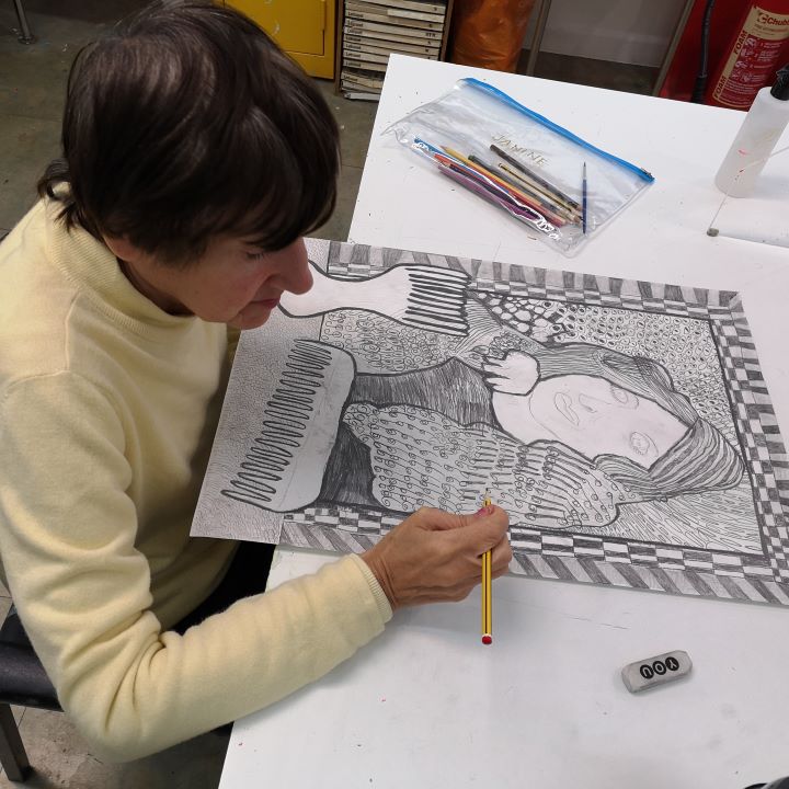 One in a series of incredibly, beautiful pencil portraits focusing on different hair styles which were used as the design for the shampoo bar packaging.