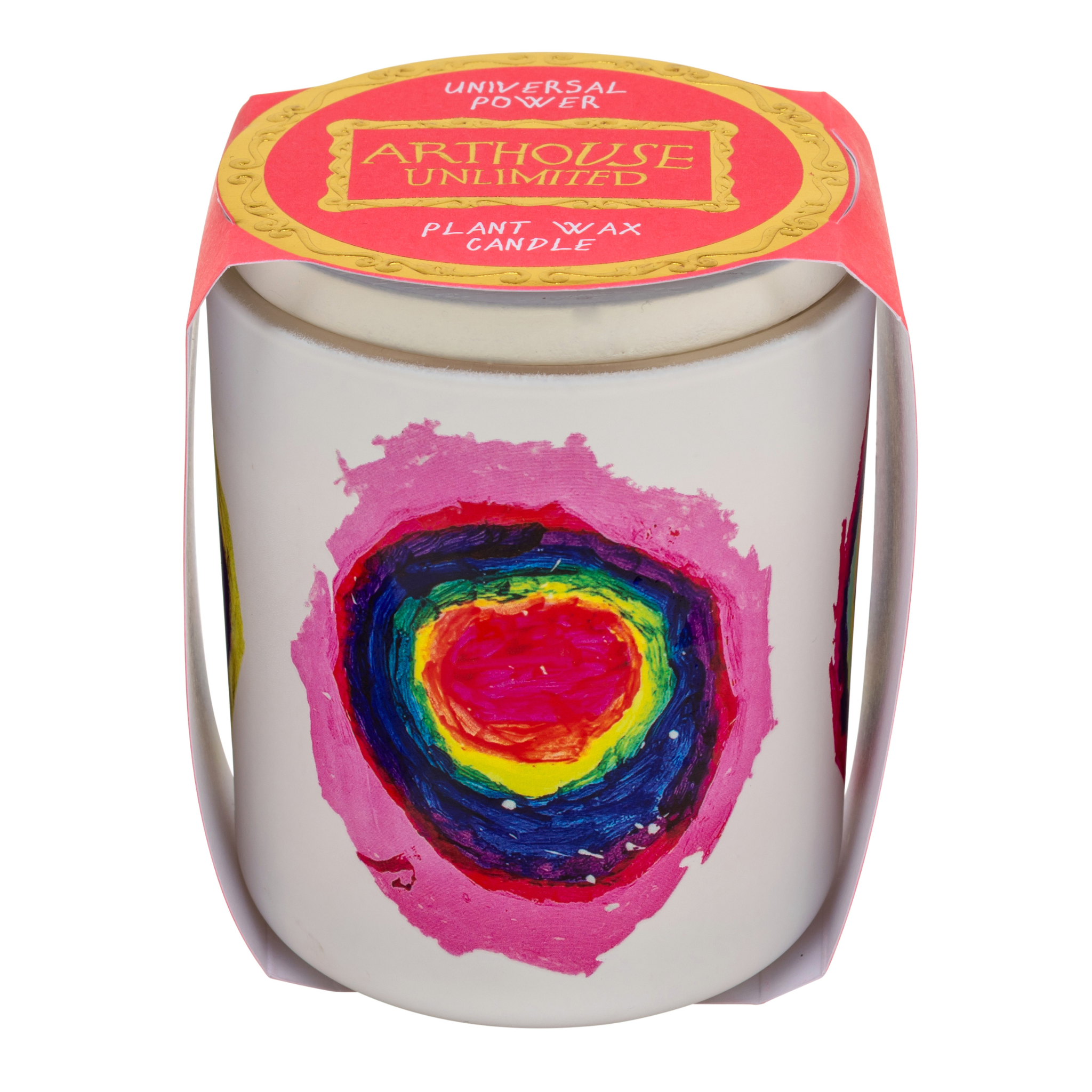 A uniquely fragranced vegan-friendly candle featuring the beautiful ‘Universal’ artwork created by talented ARTHOUSE Unlimited artist Arthur Lyle on white glass.