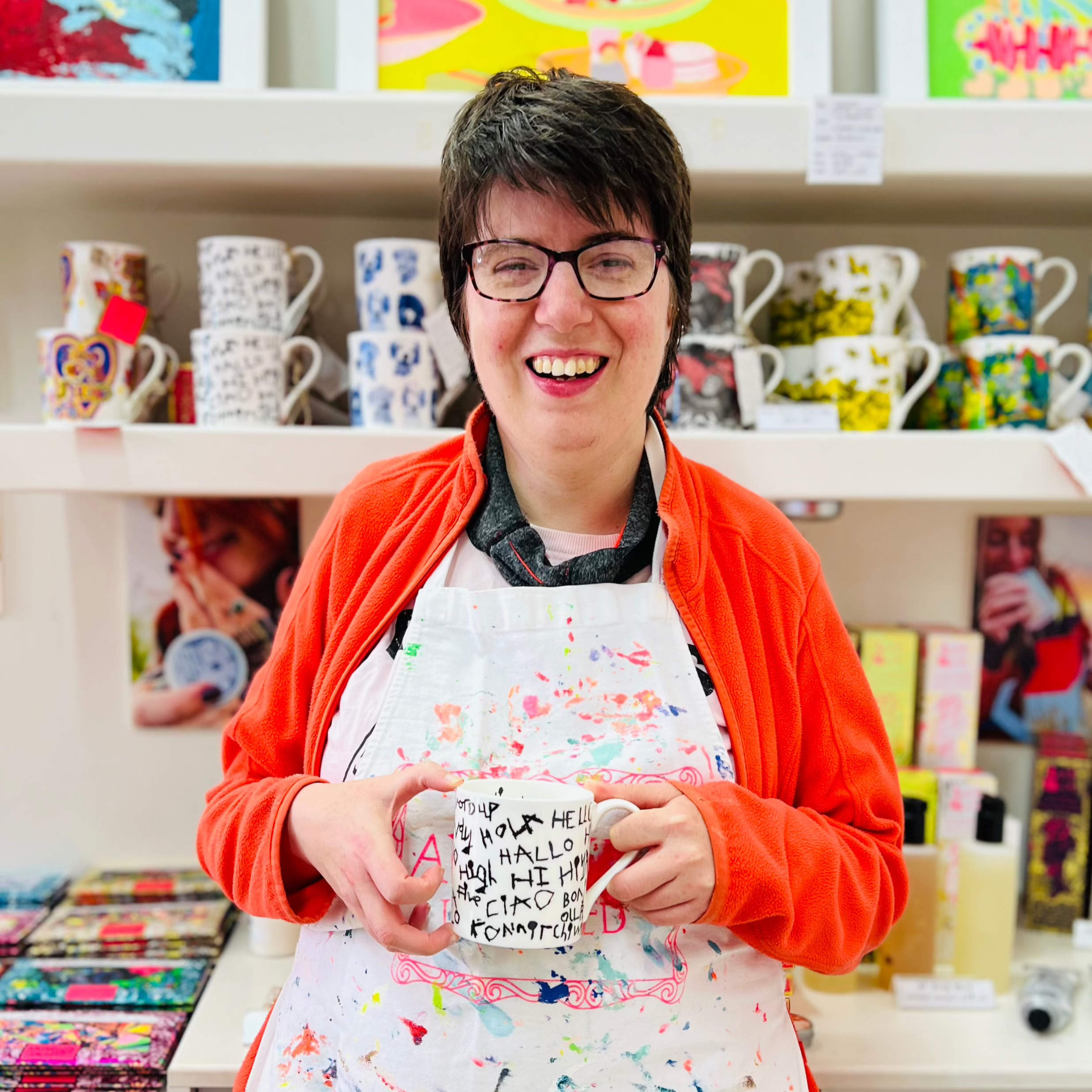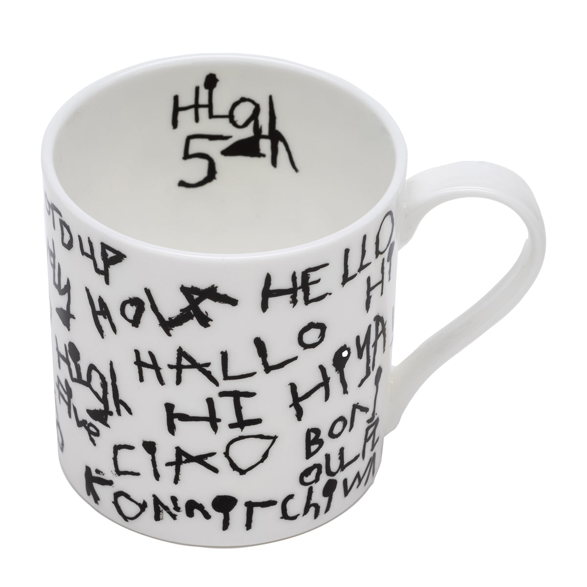 This elegant fine bone china mug features multiple words for 'Hello', created by the super talented ARTHOUSE Unlimited Artist Maria Travis. Decorated in the UK, with a special bonus 'High 5' nestling inside. The perfect gift for linguists, art lovers & good-cause supporters everywhere!