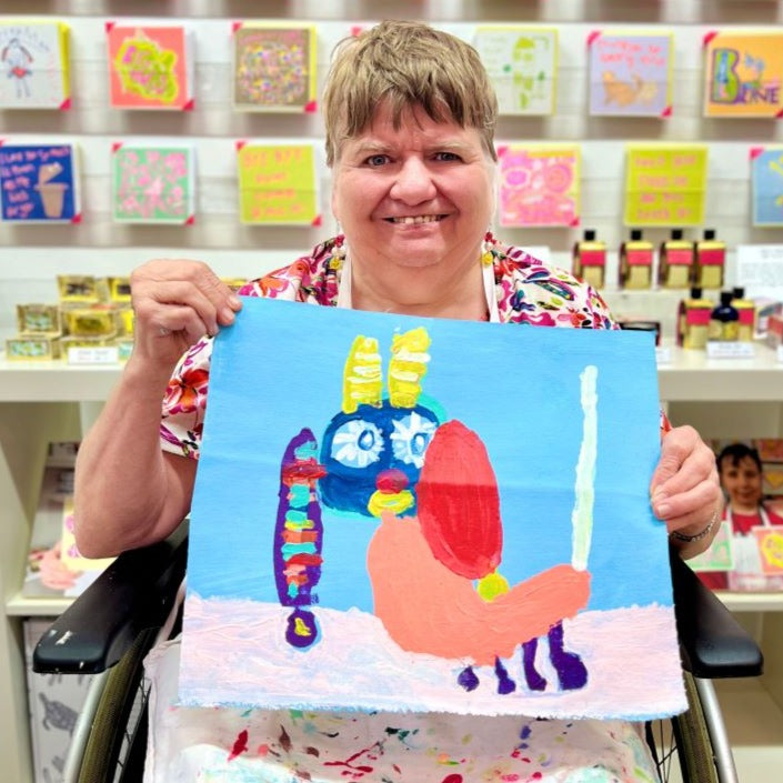 Your order will be packed with care by a team of staff, volunteers and artists at our charity in Godalming. We use Royal Mail Tracked services to deliver your order. Please note that Royal Mail Tracked 24 (Express) may take 1-2 Working Days and Royal Mail Tracked 48 (Standard) may take 3-5 Working Days.
