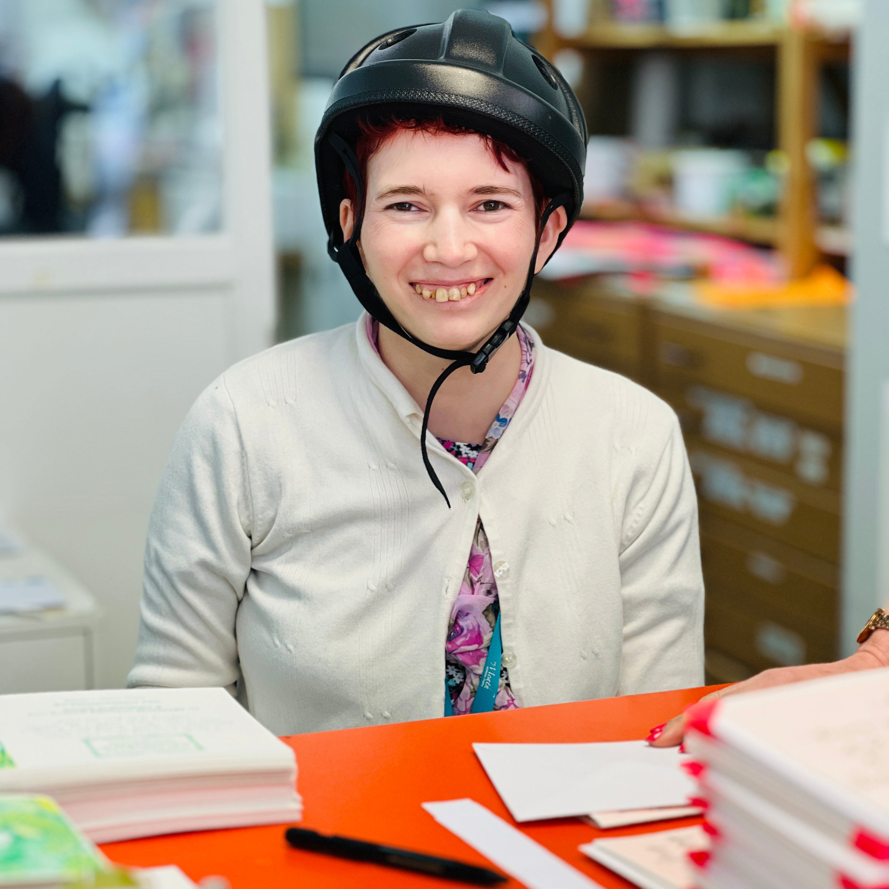 I like coming to Arthouse Unlimited so that I can serve customers at the till, I use a scanner to read barcodes on cards and chocolate and all other things. I also make cards, like the birds that say I love You Mum, thank you for feeding me.