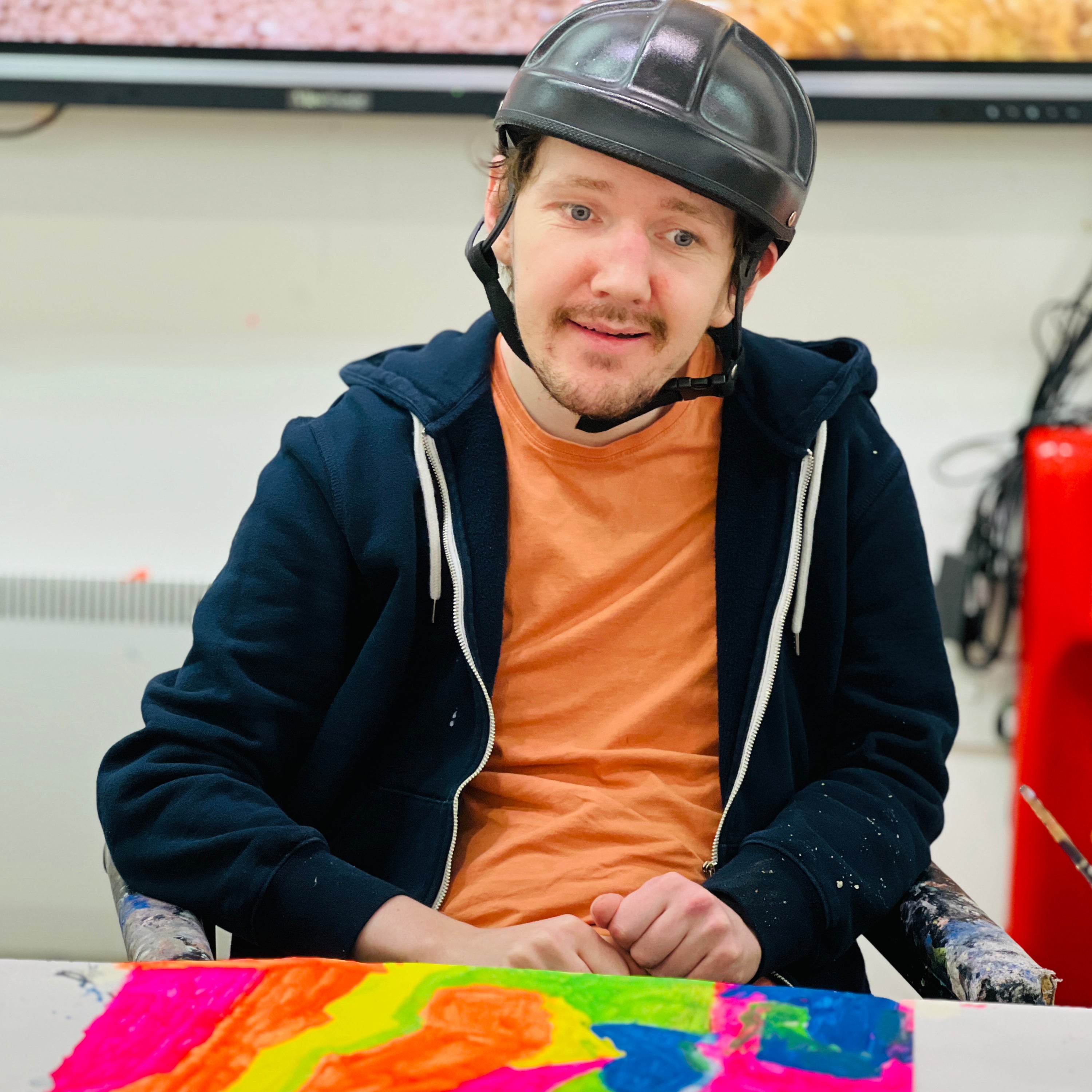 When I come to ARTHOUSE what I like best is working in the shop. I enjoy helping to pack products such as lip balms and cards and welcoming customers who visit us. As well as painting, I love sports. My favourite is snooker and I also like skiing.