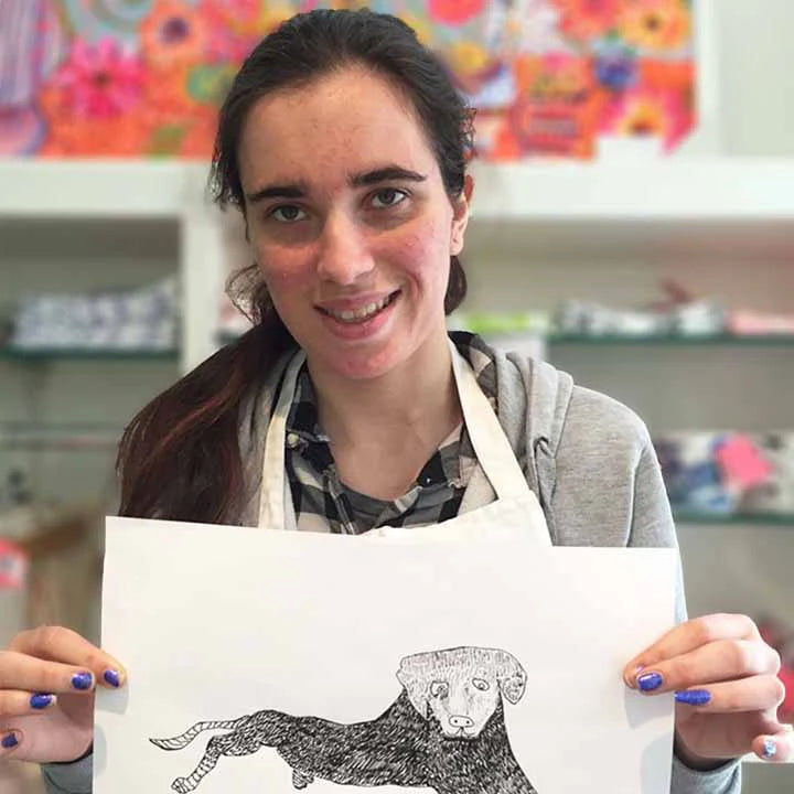 “I love that I’ve created the design. I just really love dogs. Each dog I’ve drawn I’ve actually met and has a story. My favourite dog to draw is my dog Juno, a golden Labrador”