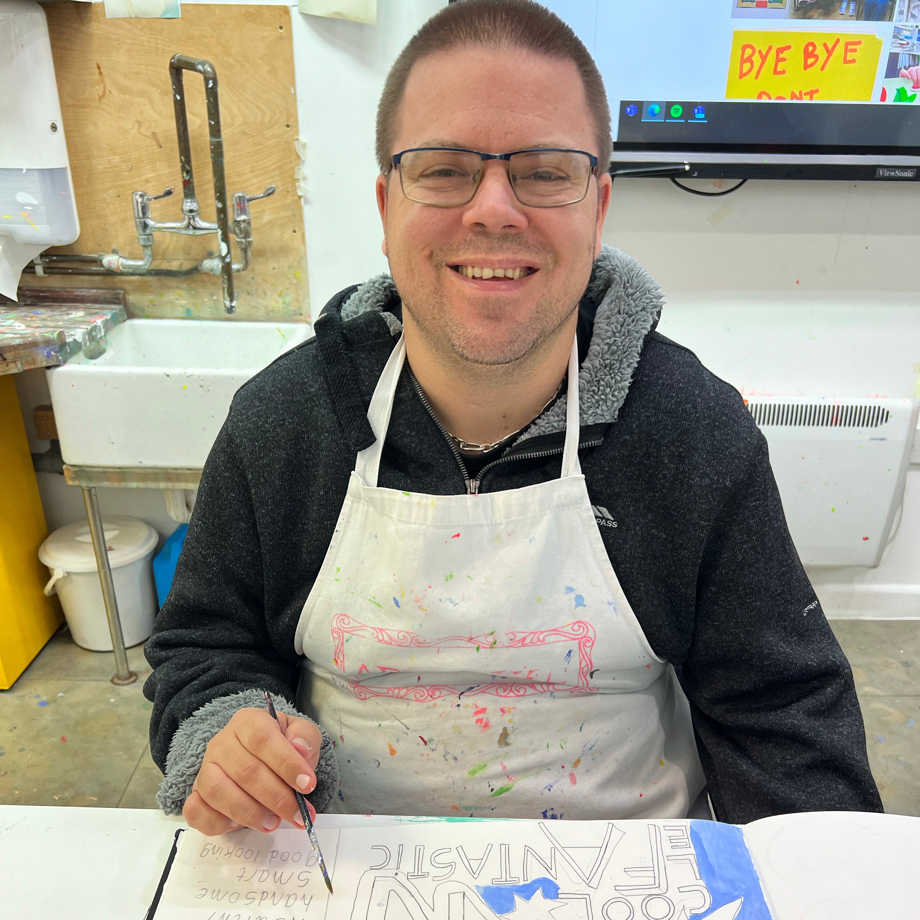 I love Arthouse Unlimited to create with my friends and we chat and paint. I particularly enjoy making group works working together - it always looks so impressive being big. Afterwards I like to see the bits I have done, it makes me feel proud. ARTHOUSE is great as I love painting, drawing and I enjoy being so creative. It shows people the work I’ve done and I really enjoy seeing people buy it.