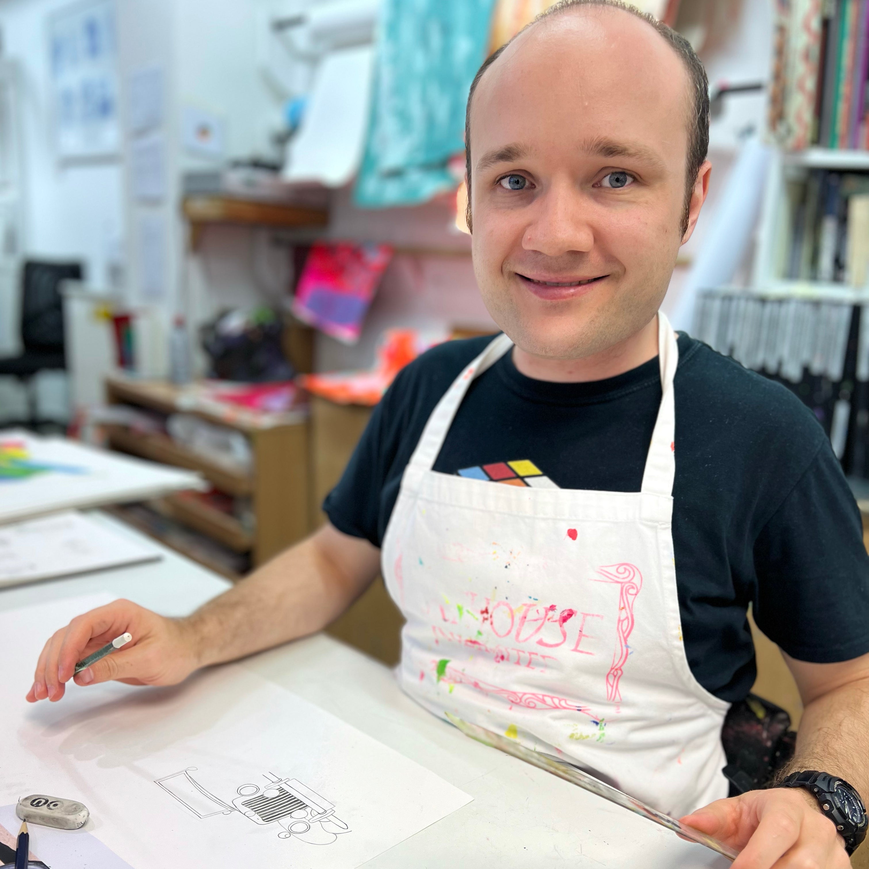 My name is Jack, I’ve been coming to ARTHOUSE for a while now. I love coming to ARTHOUSE because I do lots of artwork and I like drawing cartoons to relax. I enjoyed designing and painting the tropical trio and donkey disco paintings. It’s nice to learn new skills and stretch my ability. I feel blessed when I see my artwork on products in the shop. It makes me feel really proud being part of the ARTHOUSE, I created the gold frame design on the labels for all the products so my work is represented on everything at ARTHOUSE.