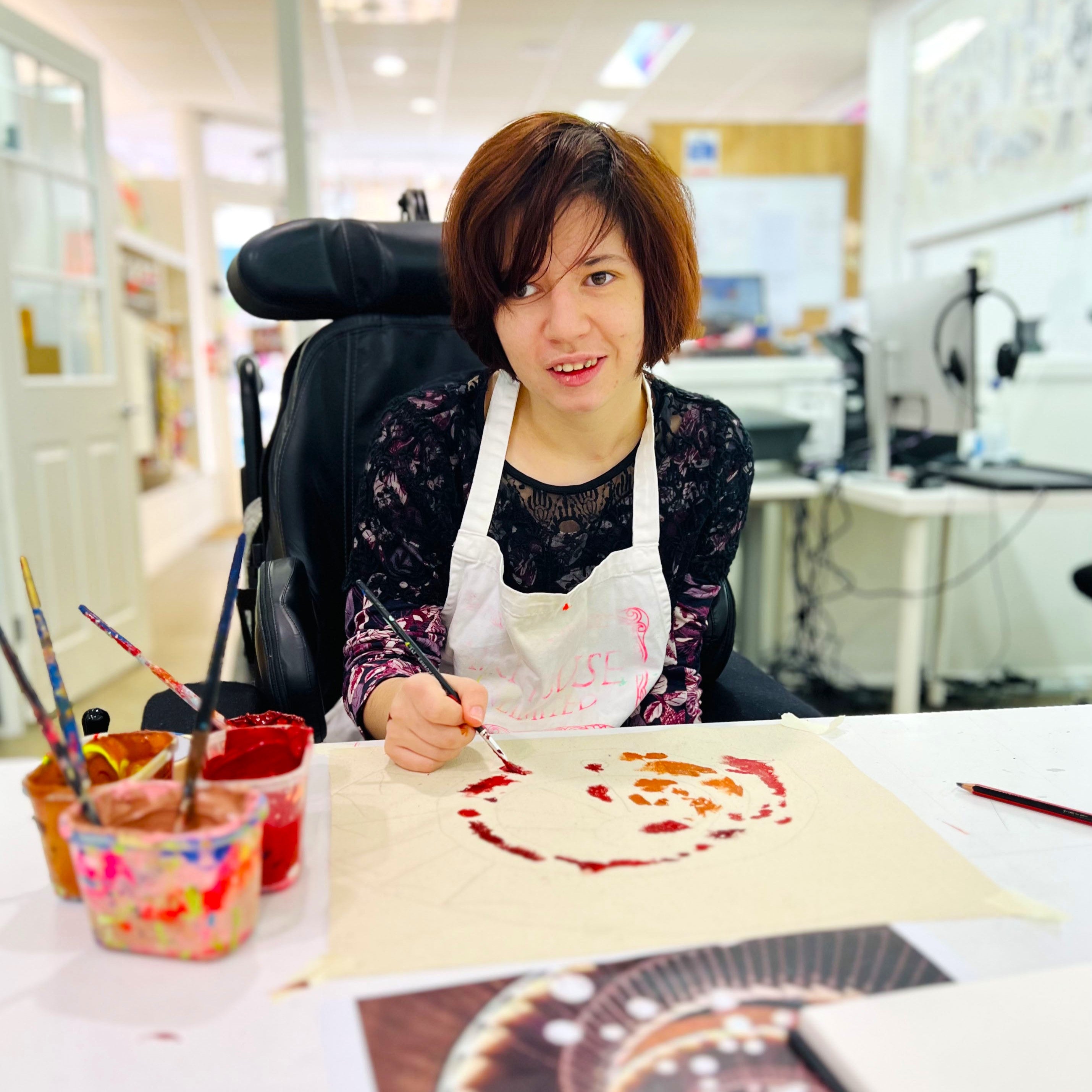 Sylvie has an incredible talent for colour and texture, radiating beauty in everything she does. Her pencil works are soft and calming. "I like to paint, it makes me feel happy and relaxed. I like bright colours, my favourite colour is purple, even my bedroom is purple."