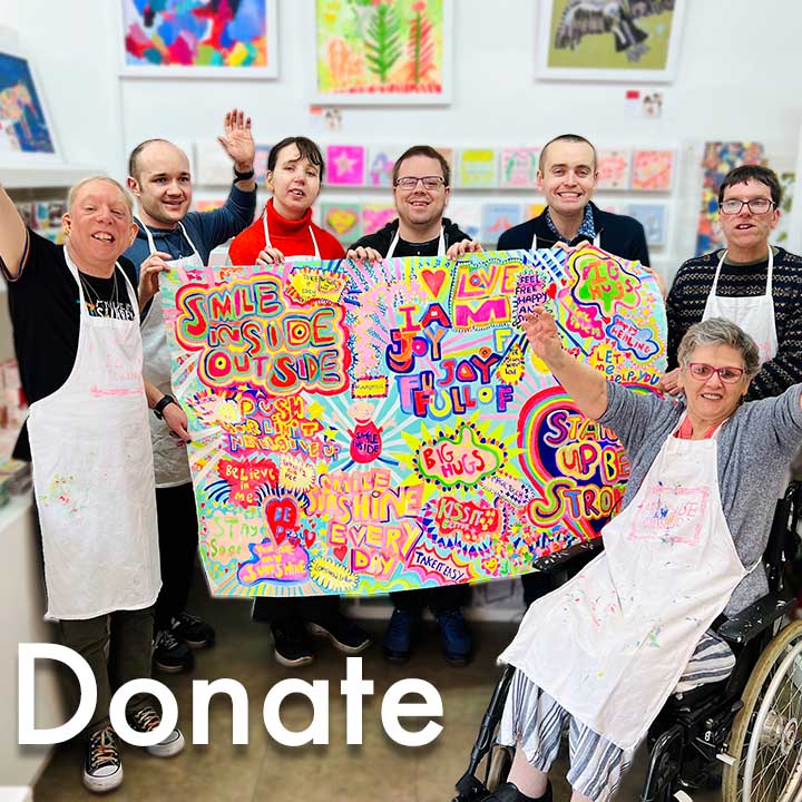 Donations play a vital role in ensuring our sustainability and the delivery of our important provision of purpose and inclusion for the artists.