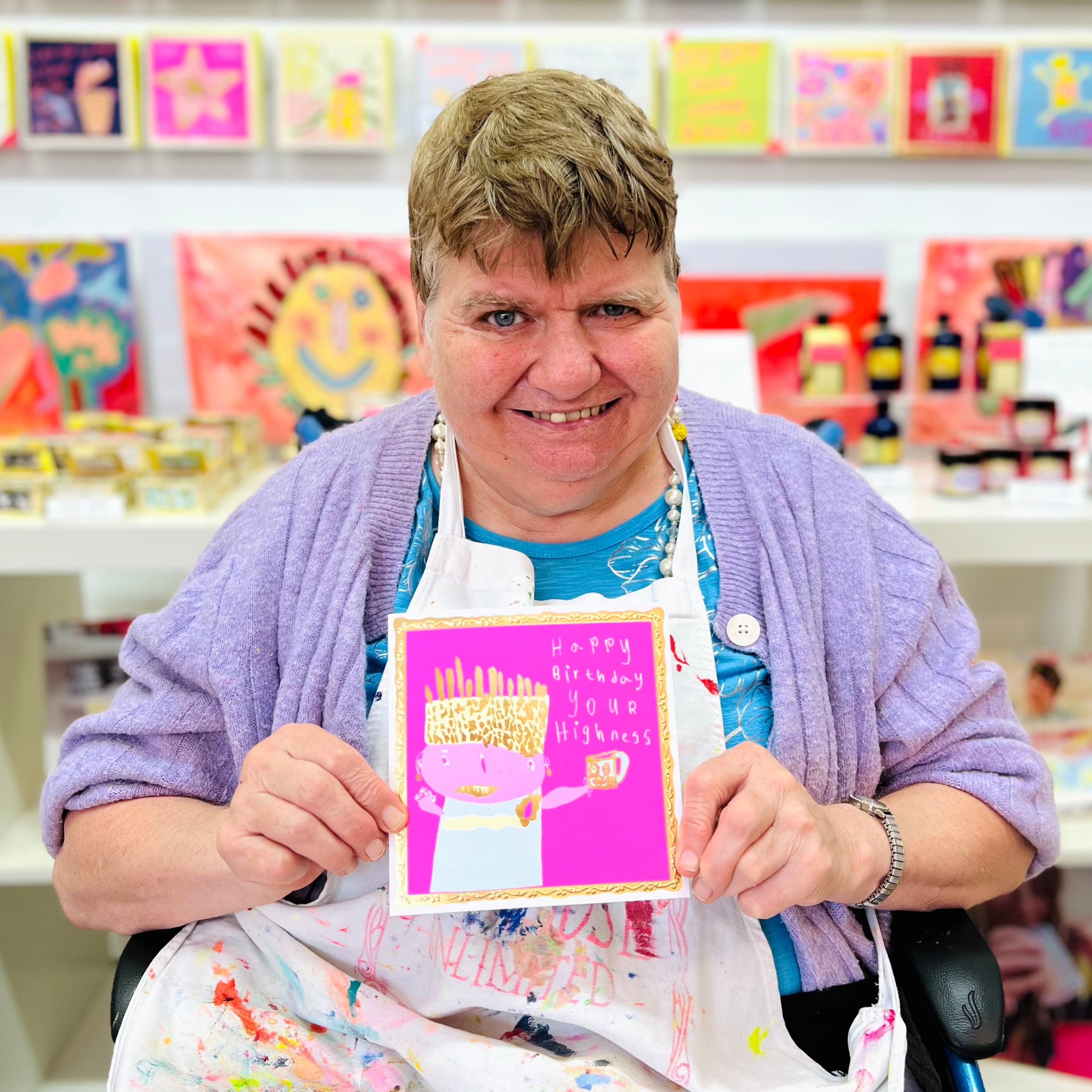 I’ve been coming to ARTHOUSE Unlimited for a long time now, I love it because I like coming up with ideas for cards. I like coming to ARTHOUSE because the people here are friendly, caring, nice and kind. It makes me feel so good when I see my work being sold. I feel really proud of myself at ARTHOUSE Unlimited.