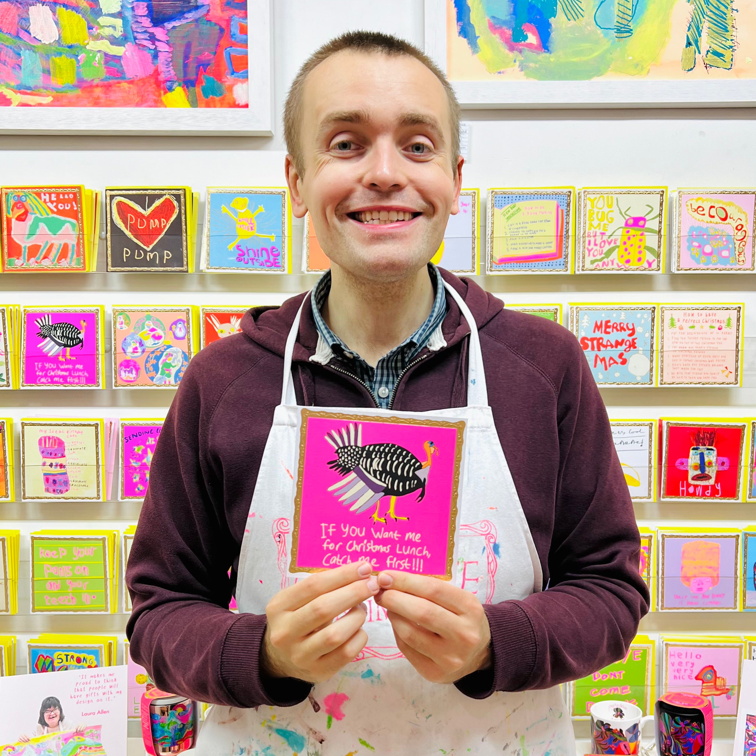 The humble turkey turns the tables in this brilliant, hot pink and cheeky charity Christmas card by artist Chris Potter. Blank inside ready for you own festive greetings.
