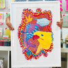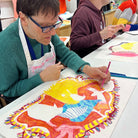 This beautiful artwork was completed as part of a project in the studio focusing on colourful birds in pencil on paper. Every artist created their own individual bird drawings and everyone worked together to add colour and energy to each piece.