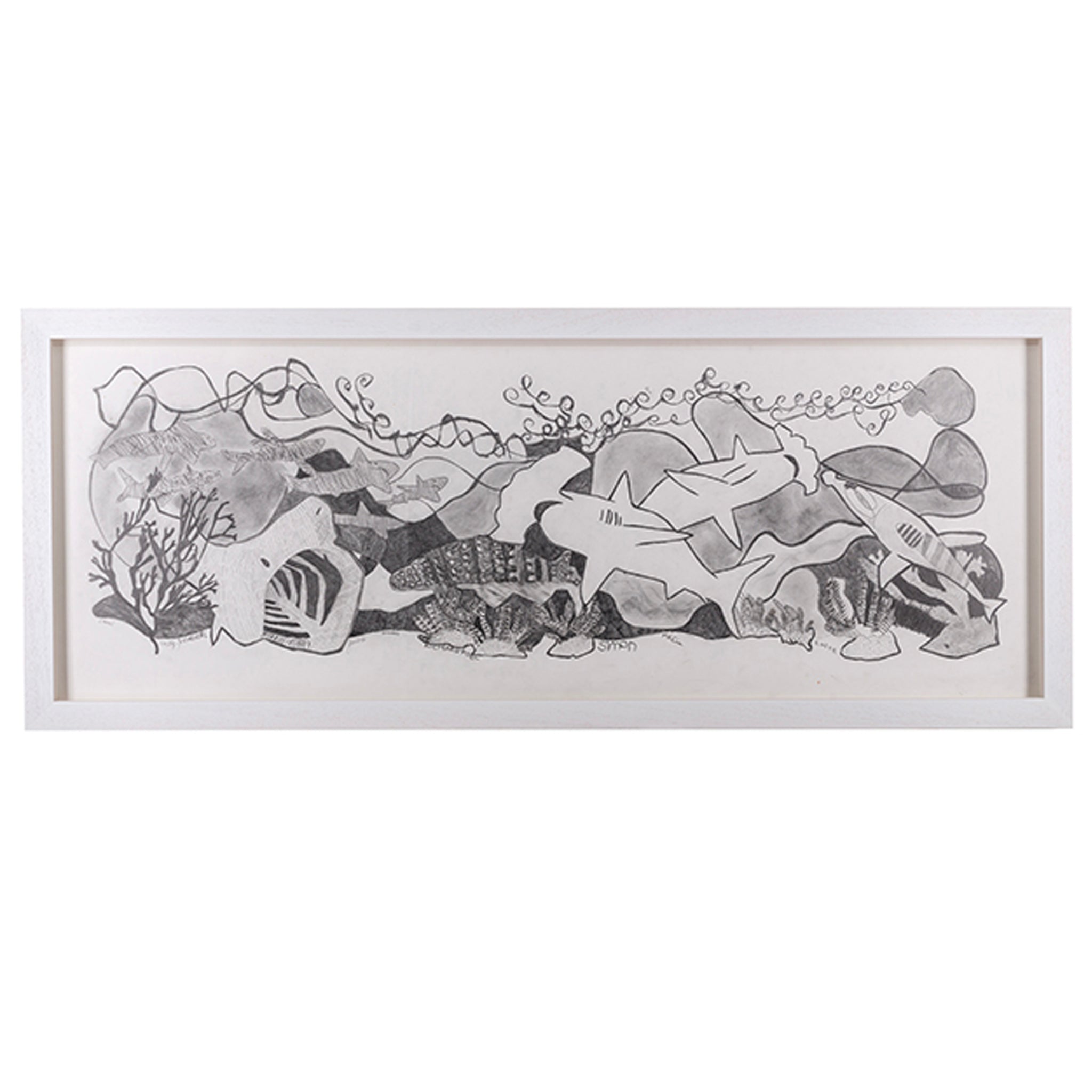 A stunning pencil on paper collaborative masterpiece depicting the predators of the deep. Full of movement and drama this artwork include the creative talents of several artists over many weeks.